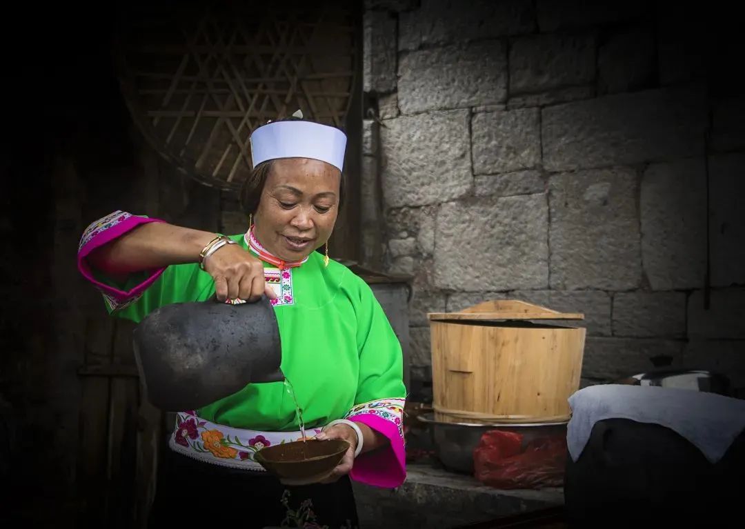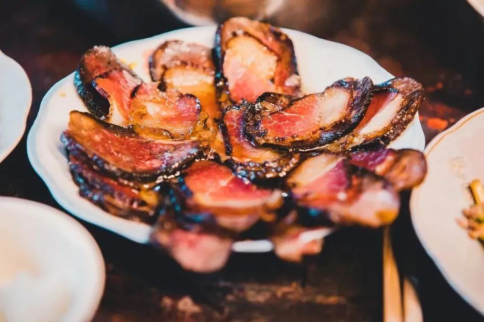 腊肉血豆腐是屯堡的特色美食,将腊肉和血豆腐洗净切片,只需最简单的蒸熟,便香气四溢。透亮的腊肉、香软的血豆腐,还伴着淡淡的松枝熏香味。