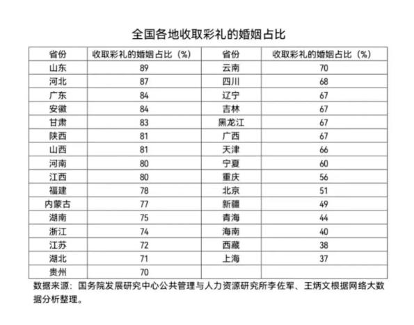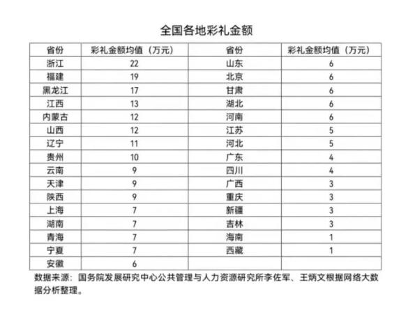 原标题:《全国彩礼大数据:浙江最高海南最低》