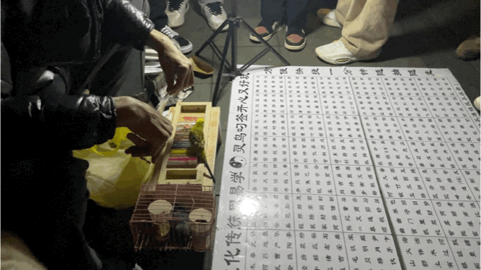 说摊主带着一只鸟给路人算命盛况空前,鸟如指掌