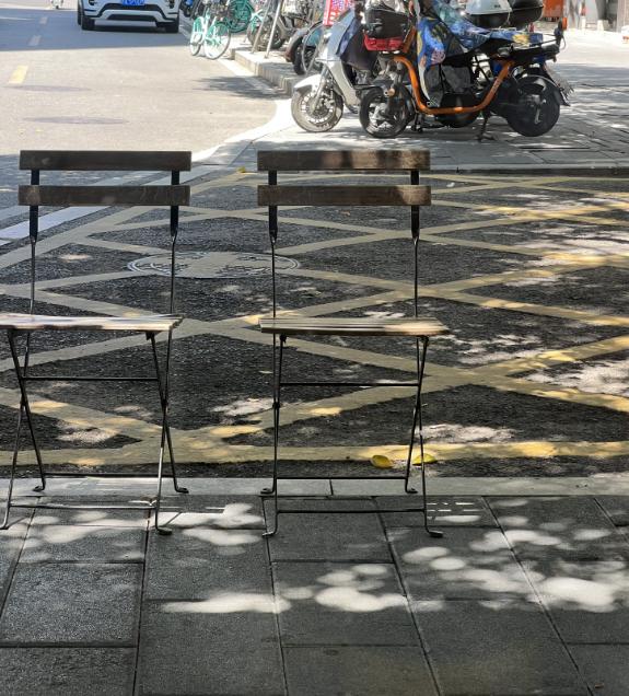 薯条午休时在树荫下吃饭薯条很喜欢观察客人。一个女孩,每天早上会晨跑完都会来店里喝咖啡,点两杯美式咖啡,再坐半小时边喝咖啡边看英文小说,看完后会把另一杯带走。