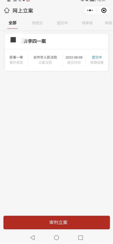 网上立案页面显示提交中就表示已经完成了网上立案的所有操作,等待法院工作人员的审核即可。