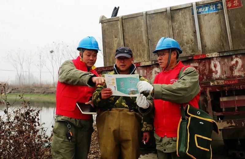 2月16日,安徽阜阳城郊供电公司党员服务队队员在颍州区西湖镇巡查35千伏三十里河电灌站专线。(孟献良 代文博)