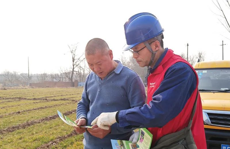 2月17日,河南焦作武陟供电公司员工武明新、雒小土在北郭乡岳马蓬村了解农户用电需求。(王向阳)