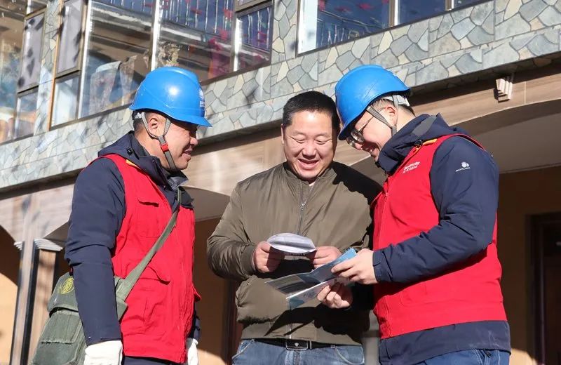 2月15日,黑龙江鹤岗供电公司员工在东方红乡东兴村了解农户用电需求。(封沂池)