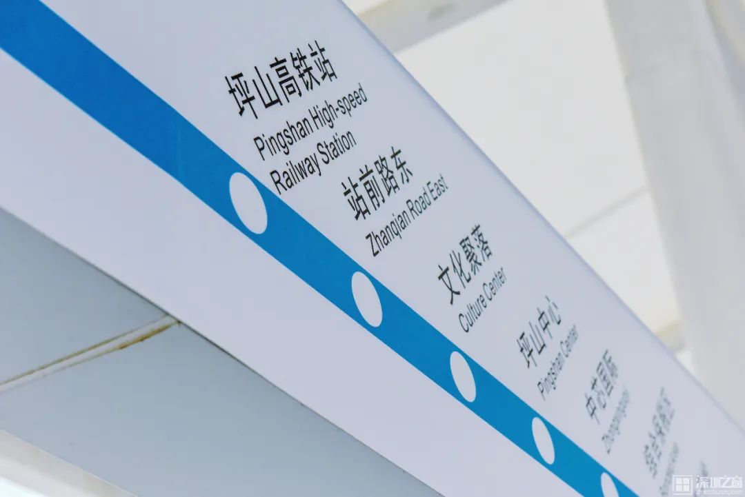 / 全长8.5公里的有轨电车,无缝衔接地铁 /坪山云巴1号线是深圳首条空中胶轮有轨电车,全线长8.5公里,共设11座车站。