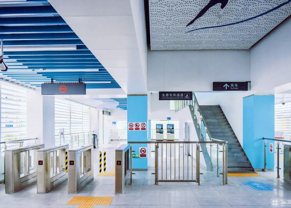 全线车站以简约的蓝白底色为主,“云中穿梭巴士”的定位从设计上就可窥见一斑。