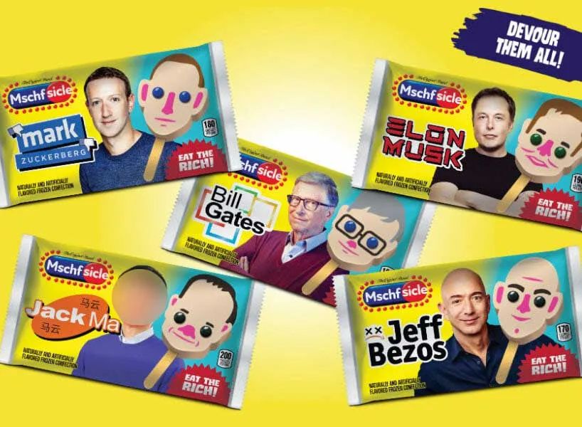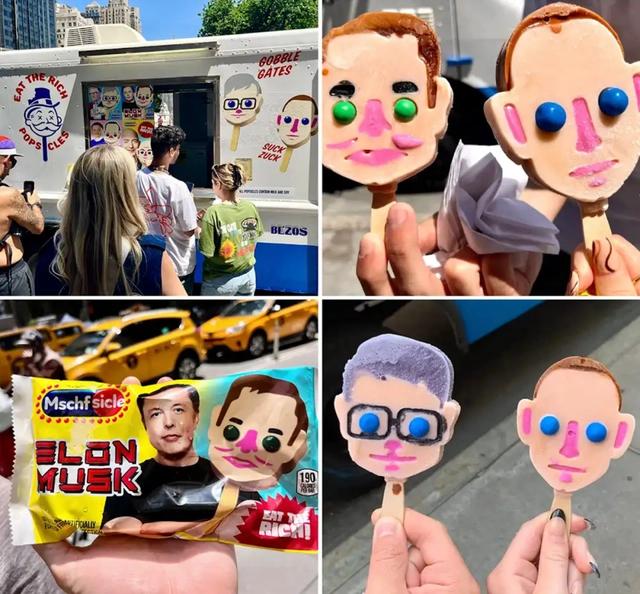 不要以为这个团队是有什么天降的好运气,随便一出手就能引起关注。实际上,这已经不知道是他们第多少次恶搞了。因为这种恶搞,他们还没少收到过品牌的律师函,为此他们还专门设立了法务部来应对。之前出过最让打工人解气的恶搞案例,是将贝佐斯、比尔·盖茨、马斯克、扎克伯格和Jack Ma等全球顶级富豪的脸,做成雪糕,沿街叫卖。实物与本人不能说不像,可以说是毫无关系,但这依然不影响人们购买的热情。