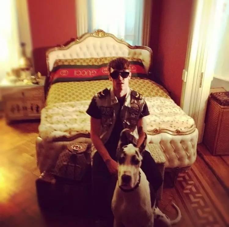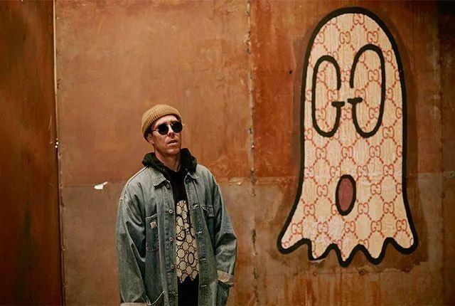 如果只是这样的话,那他最多是个狂热粉丝。直到2013年万圣节,心血来潮的他将自己心爱的Gucci床单上剪了两个洞,披在身上在街头游荡,从此诞生了#GucciGhost 的灵感。自此,他一直强化这个标签及灵感。从此他自己的衣服、甚至街头垃圾箱都被他涂鸦。