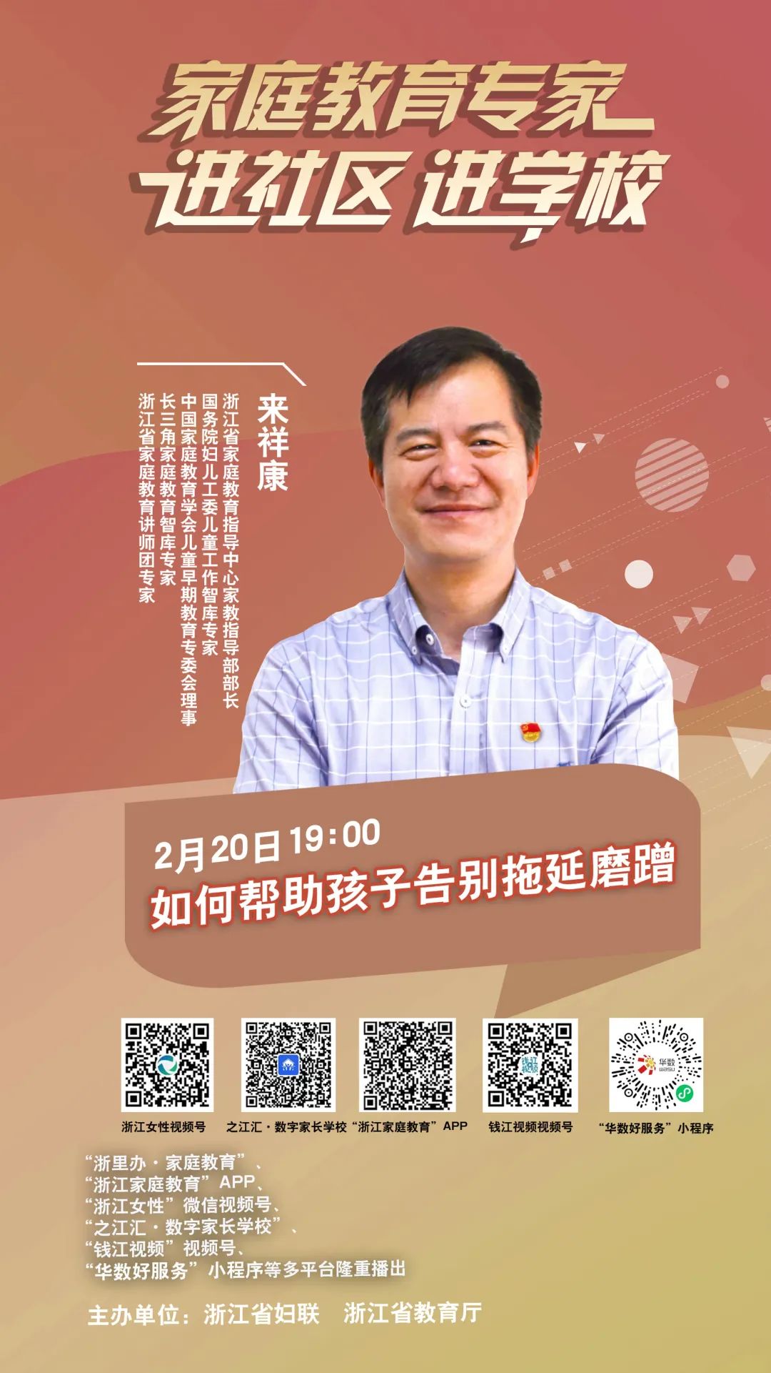 浙江省妇联、浙江省教育厅联合推出了“家庭教育专家进社区进学校”活动,作为家长学校“开学第一课”系列课程,第四课就跟家长们一起来聊一聊如何帮助孩子告别拖拉磨蹭。