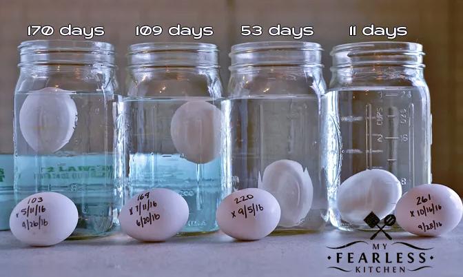 11天的鸡蛋能水平沉底,53天的鸡蛋就竖立了起来
