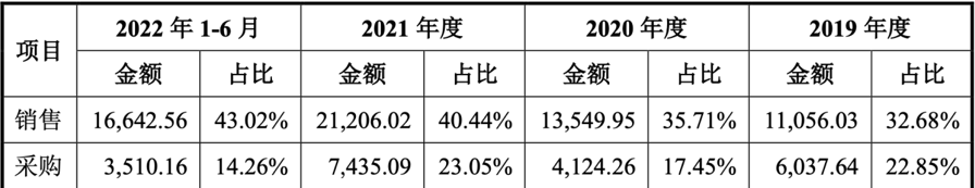 另外,博苑股份自身的客户与供应商也存在重合。就拿其第一大客户齐鲁制药来讲,齐鲁制药同时也是博苑股份的前五大供应商之一。需要注意的是,2019年-2021年以及2022年上半年,博苑股份客户与供应商重叠的合作单位分别为23家、22家、28家与16家。其中,重叠情形下销售金额分别为1.11亿元、1.35亿元、2.12亿元以及1.66亿元;采购金额分别为6037.64万元、4124.26万元、7435.09万元和3510.16万元。