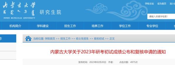 内蒙古大学关于2023年研考初试成绩公布和复核申请的通知