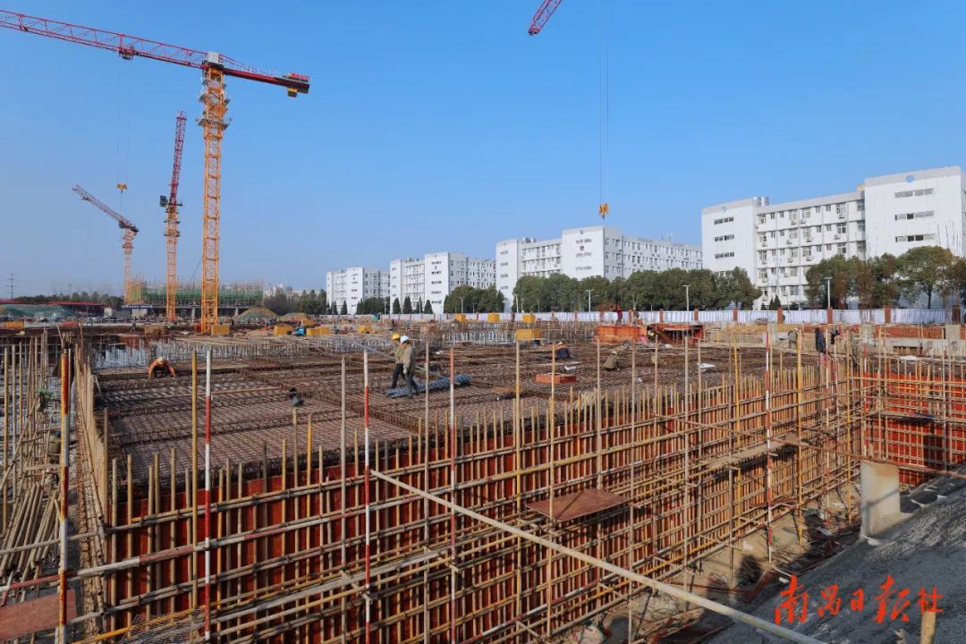 “为达到预定工期目标,我们提前统筹谋划水电报装、管线预埋及设备安装等工作,确保做到无返工、提效率。3月份,我们将在现有200名建设者的基础上再增加100人,保障多道工序同步施工,力争8月完工。”南昌高投城市建设开发有限公司施工项目管理中心工程部工作人员谢志明介绍,该项目于去年11月开工,目前主体结构施工已完成约35%,预计2月底可完成6300平方米整体地下室顶板混凝土浇筑。教学楼、报告厅、实验楼、图书馆及学生宿舍等11个单体建筑将于4月底实现主体封顶。