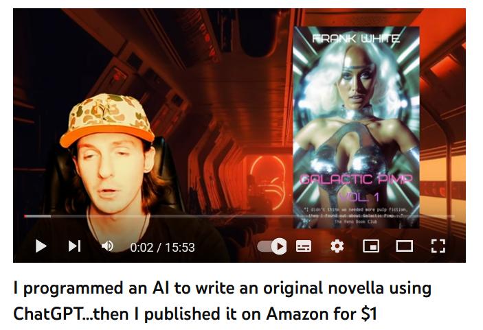 在YouTube的一个视频中,怀特分享了用ChatGPT创作这部小说的过程,并且告诉大家,只要投入必要的钱和时间,任何人都可以一年生产300部这样的小说。