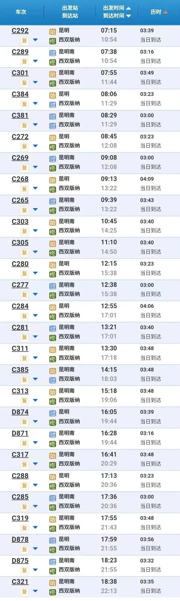 约3个多小时就能到达西双版纳站