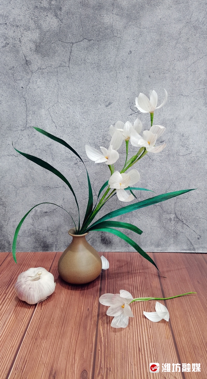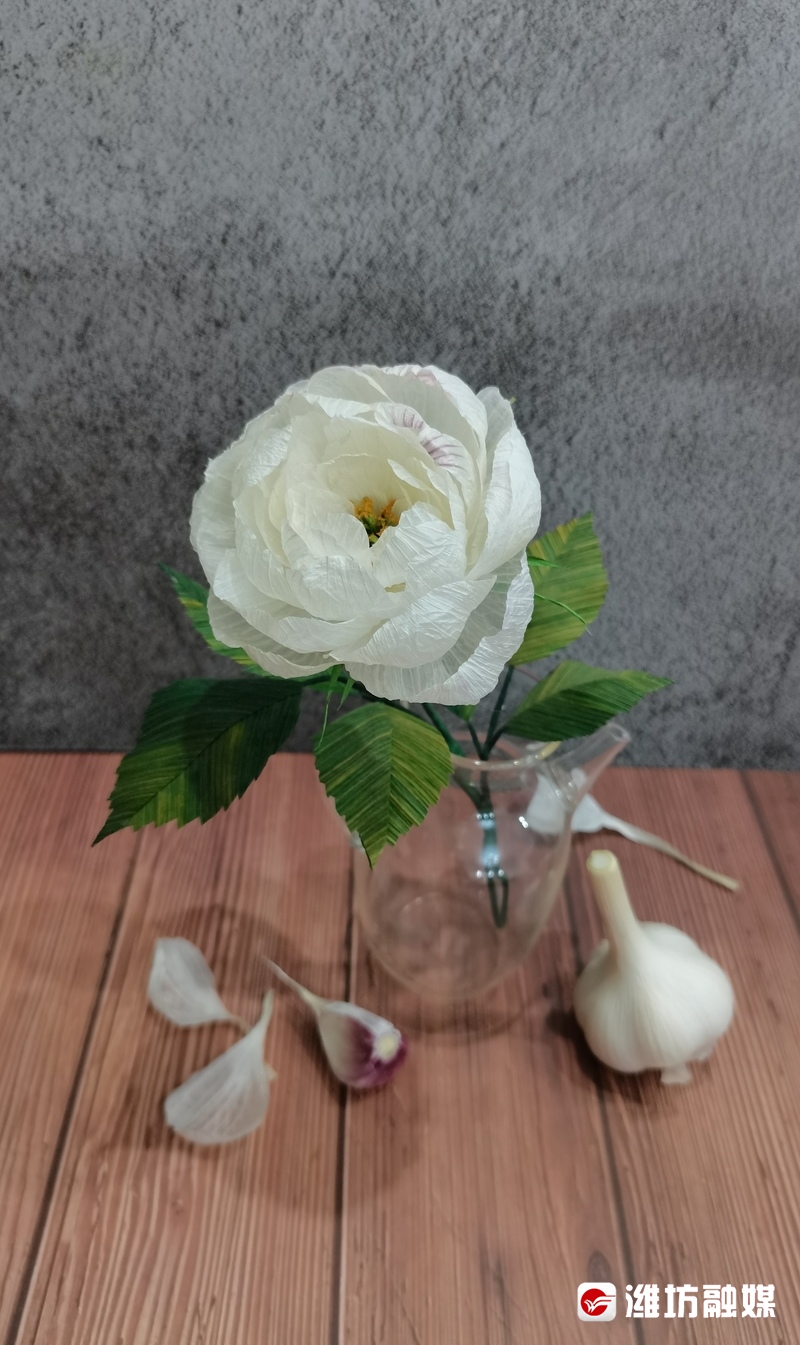 大蒜皮做成的手工花束。