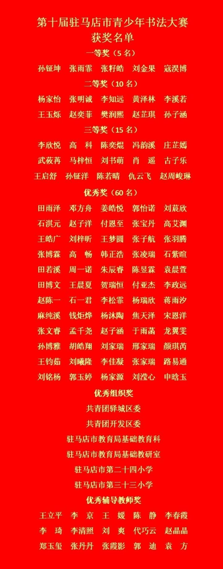 “第十届驻马店市青少年书法大赛”获奖名单公示