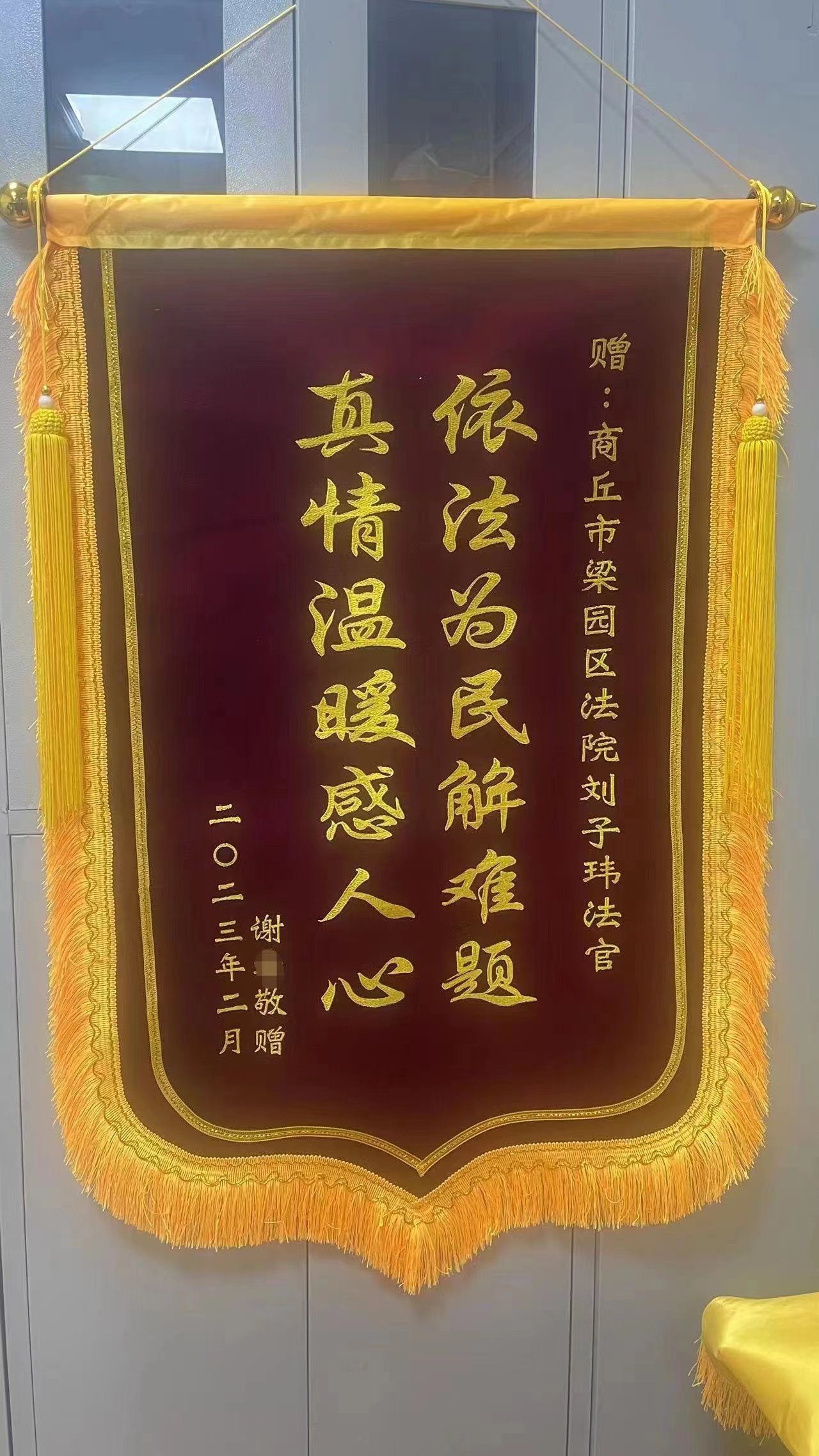 商丘梁园区法院:执行法官温情促和解 当事人寄锦旗表谢意