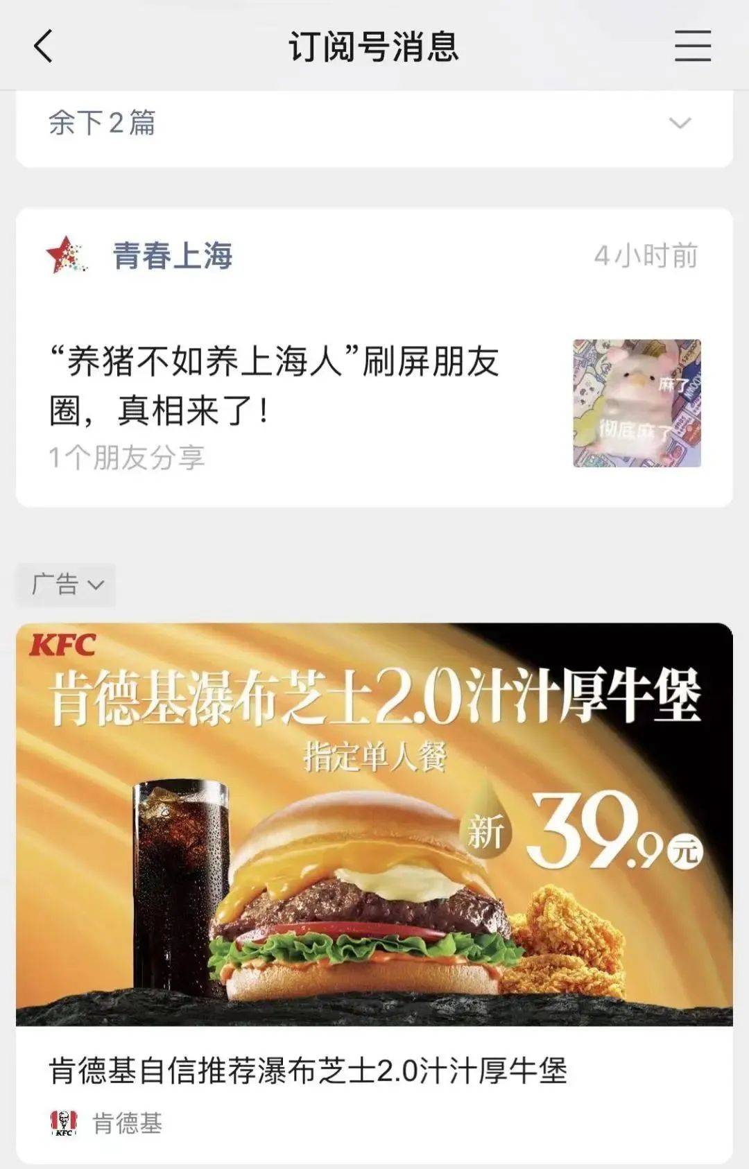 在这次取消头图的操作中,有四类内容拥有特权:系统筛选出的常读订阅号、视频号、广告和微信近期升级的短图文模式。由于常读订阅号的数量被控制在12个以内,加上乱序推送机制,常读订阅号的出现概率并不大,反而是视频号和广告,占据了订阅号的视觉中心。