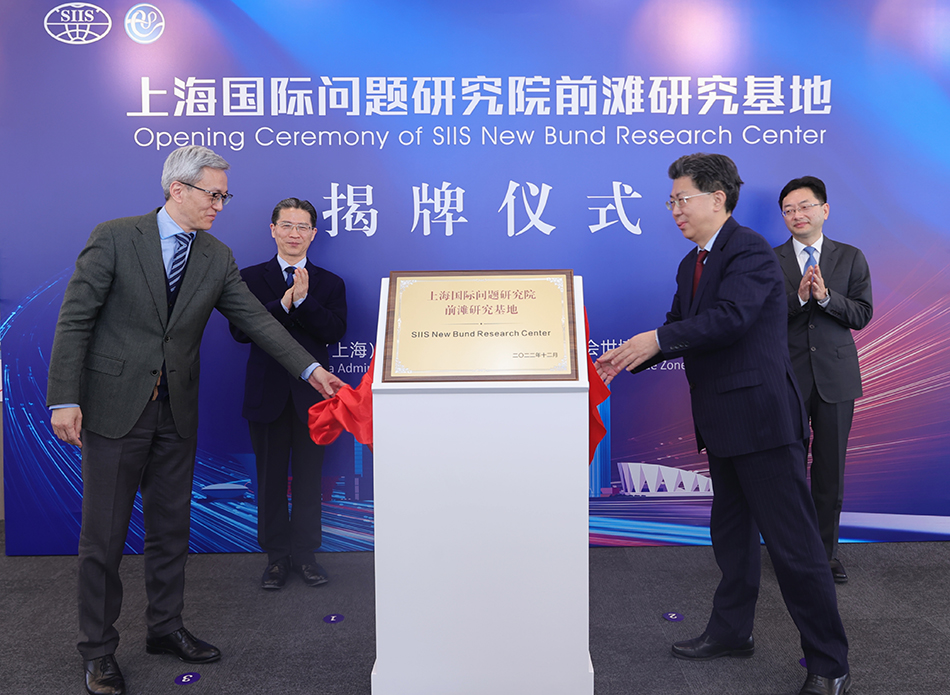 2023年2月28日上午,上海国际问题研究院(以下简称“上海国研院”)与中国(上海)自由贸易试验区管理委员会世博管理局(以下简称“世博管理局”)在前滩世贸中心联合举办“吸引国际组织落户上海”专题研讨会暨上海国际问题研究院前滩研究基地揭牌仪式。上海国际问题研究院院长陈东晓和世博管理局党组书记、副局长施引华共同为研究基地揭牌。全国政协委员、上海市社会主义学院院长、民建中央原副主席、上海市政协原副主席周汉民,浦东新区区委常委、副区长杨朝,世博管理局副局长沈锋,上海国研院等各相关机构代表共同见证。