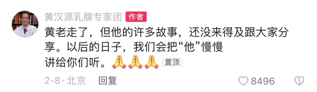 黄汉源乳腺专家团发出的讣告,让无数网友为这位老人的离去