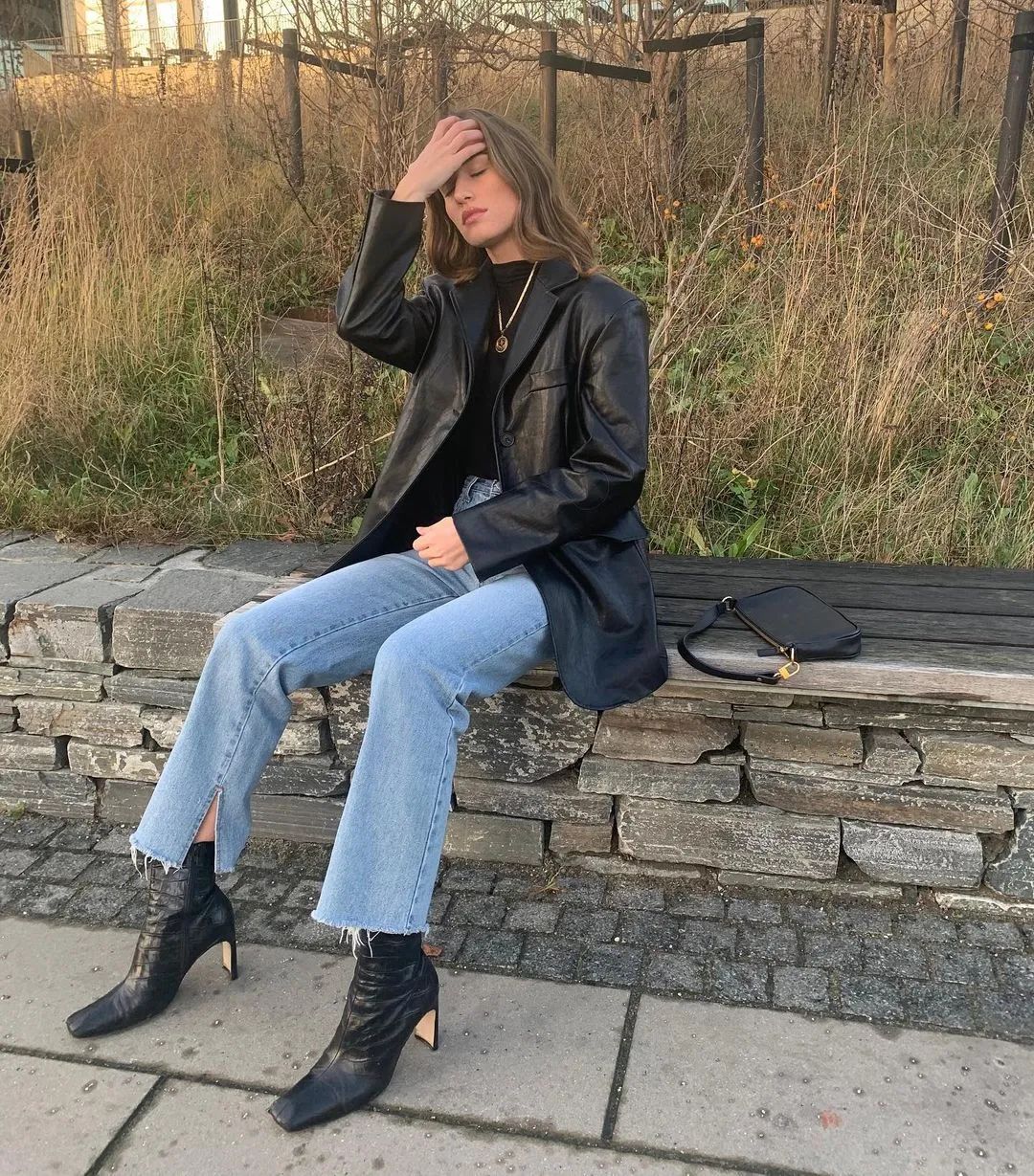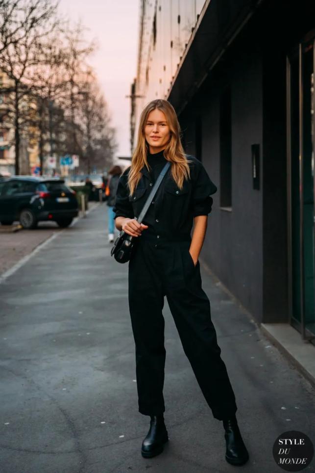 黑色的男友牛仔裤有种神秘感,这样的穿法适用于大部分人,超级显瘦。