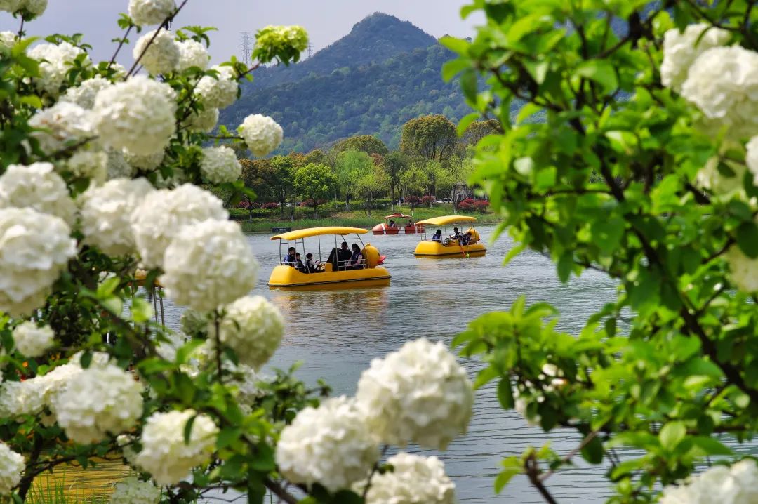 在杭州寻找木绣球的踪迹,湘湖是不得不提的地方。4月份,上百株木绣球将共同组成纯白花海,仿佛天空中的云朵掉落人间,已经不能用言语形容它的梦幻与美丽。