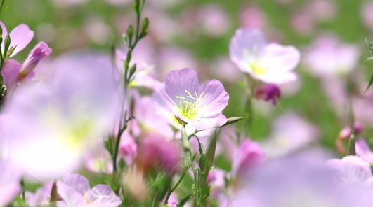 每年四、五月,良渚古城遗址公园的月见草就会尽数盛放。月见草的花瓣极薄,在阳光下呈现出半透明的质感。成片怒放的月见草粉如烟云,惹人沉醉。