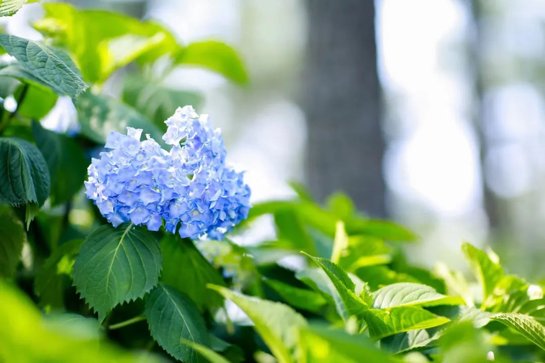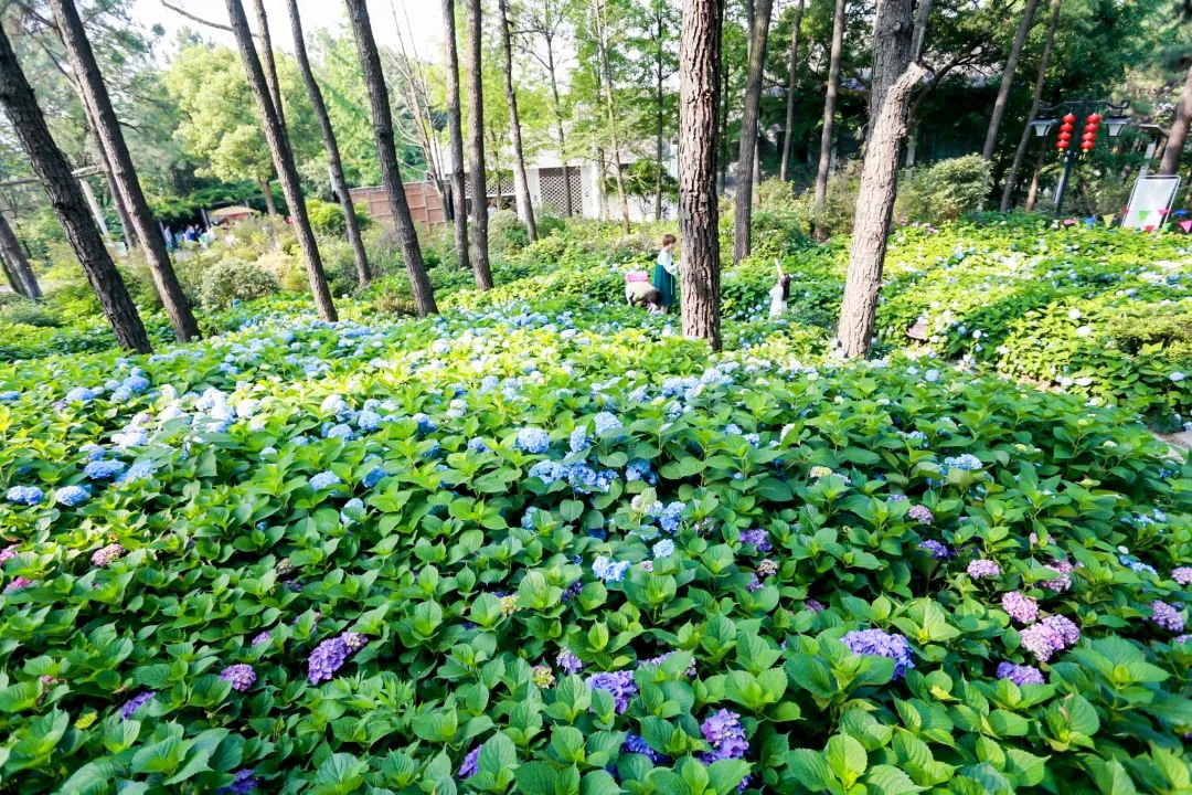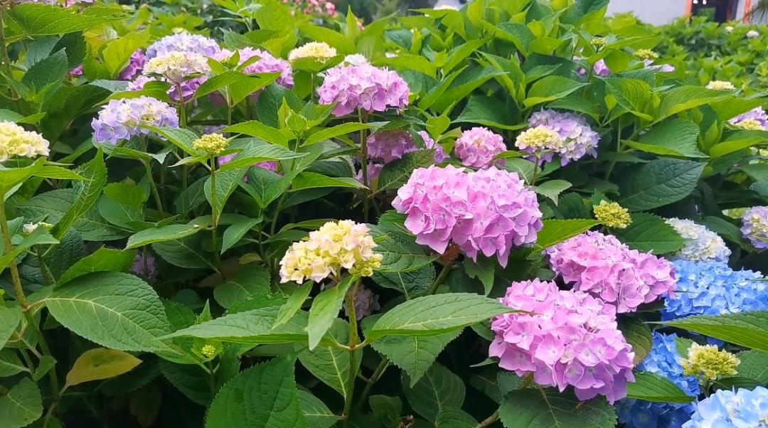 在临平公园,以蓝紫粉为主色调的八仙花,一朵朵彼此簇拥着盛放,显得安静而美好。