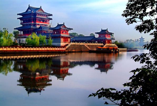 凤城河风景区四面环水,因水成趣,以望海楼为中心,四面辐射,与桃园、老街交相呼应。其中,望海楼初建于南宋绍定二年,被誉为“江淮第一楼”,无数文人骚客在此留下了珍贵的墨宝。泰州引江河