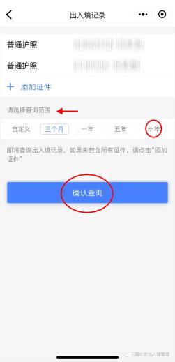 选择“查询范围”,最长可查询十年。点击“确认查询”。