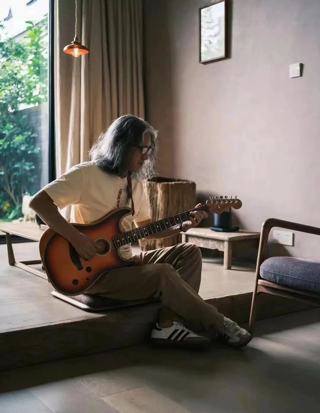 排练室上没有任何聚光灯,只有一身素衣、一头长发、数件乐器,是人与音乐融为一体的自然和谐。