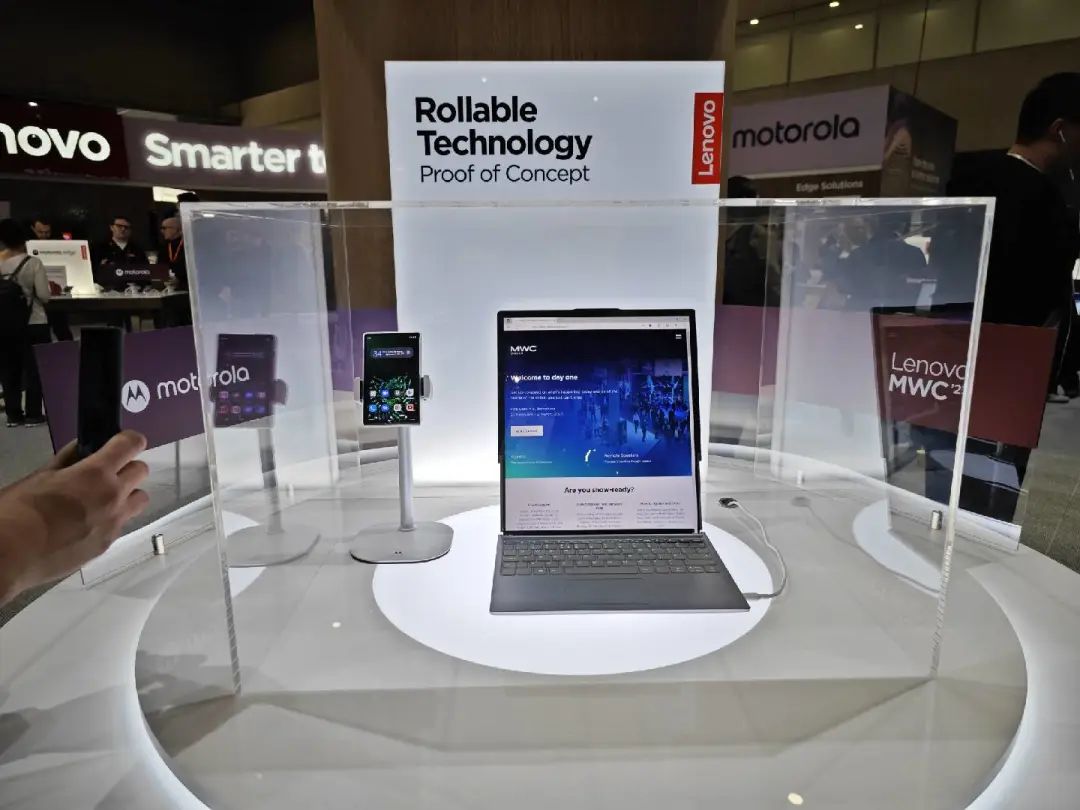 联想这次带来了一台卷轴屏手机以及一台卷轴屏笔记本的原型机。