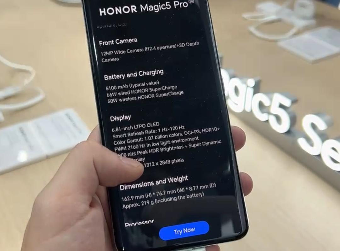 Magic 5 拿在手上的分量还蛮轻的,配置方面中杯和大杯都搭载了高通骁龙 8 Gen 2 处理器,屏幕除了尺寸区别之外,参数上基本一样。差评君粗粗看下来,Magic5 中杯和大杯的主要区别,是在后置光学变焦倍数(一个支持 2.5 倍、一个支持 3.5 倍 )和无线充电功能的有和没有上,如果大家对这款手机有兴趣,托尼后续会给大家做详细的评测。