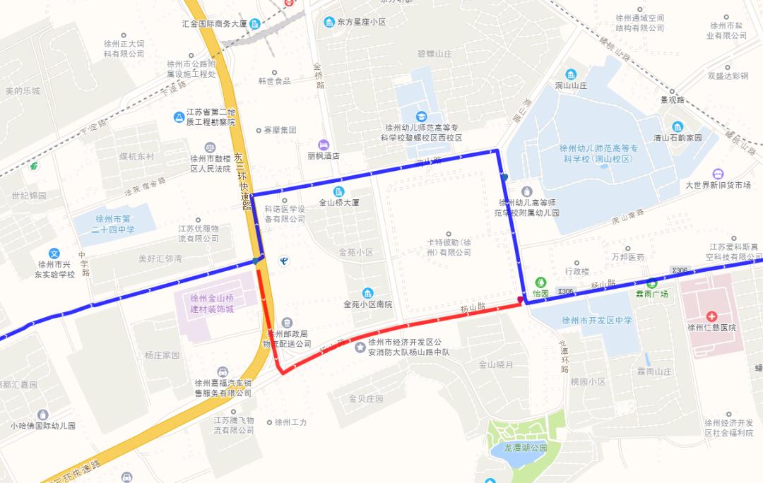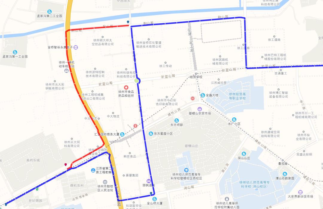因徐州经济技术开发区金山桥片区杨石大沟整治工程施工需要,工程施工期间对洞山路(三环东路-金桥路段)、金桥路实施交通管制,已不具备公交车通行条件。从2023年3月2日起,临时调整公交线路绕行。(向下滑动查看)