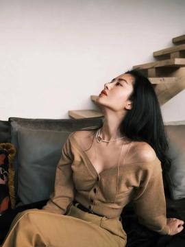 珍珠扣的奶奶衫也很有设计感,还带有一点宫廷风,演绎慵懒的性感~