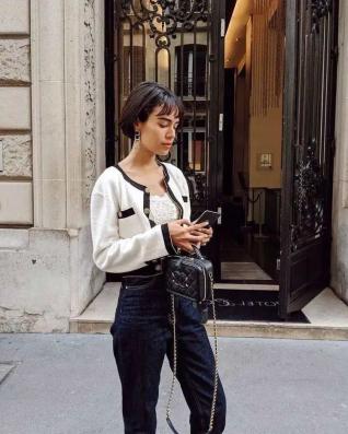 小香风的奶奶衫也很百搭!内搭小吊带,性感不外露;内搭换成衬衫,简单的搭配更加凸显它的独特和魅力。