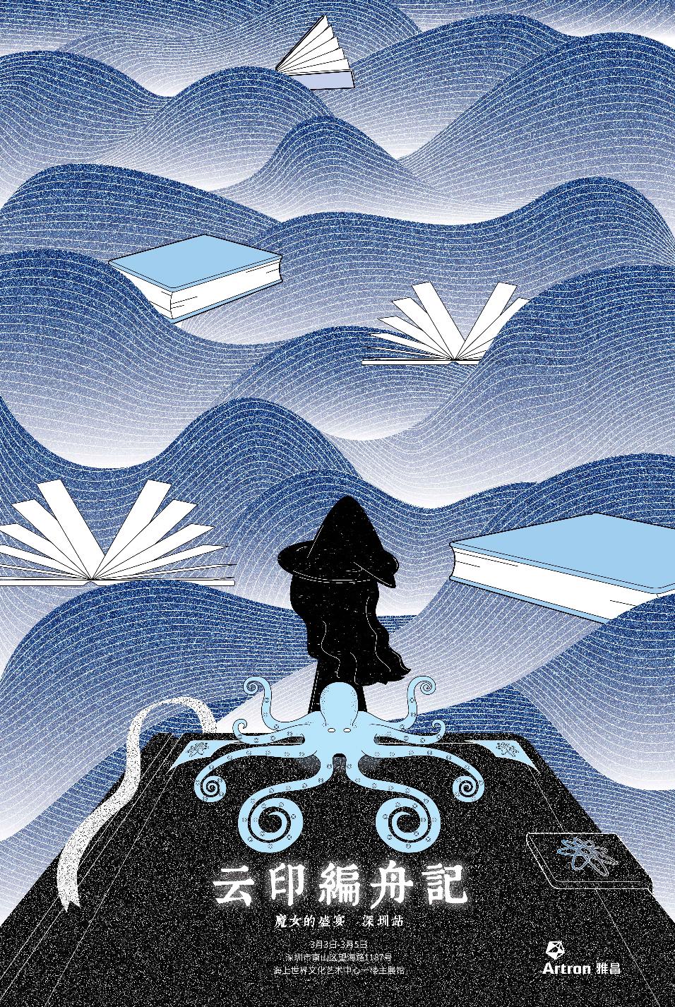 “魔女的盛宴”是一个创新沉浸式命题艺术展,本届展览以“蓝黑”为主色调,以“梦幻的水世界”为主题,集结100多位新锐艺术家(包含平面设计、插画、纯艺和立体雕塑等)共同打造蓝色的艺术盛宴,一起畅游神秘的水中世界。在海上世界文化艺术中心这个依山傍海的展馆里,雅昌的展位以「云印编舟记」命名,旨在成为这个梦幻水世界的摆渡人。我们将带来以「水世界」为主题的出版物,其中既有荣获海内外大奖的重磅好书,也有与摄影师独家合作的艺术书籍。不少珍贵好书市面上难得一见,此次悉数呈现,让大家近距离感受雅昌艺术印刷的匠心品质。人生海海,书籍如舟,让我们连接彼此。