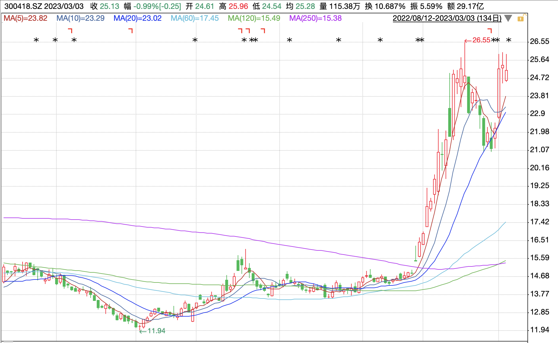 今年以来,昆仑万维股价随着“ChatGPT”火爆而大涨了74.39%。截至3月3日收盘,昆仑万维报25.13元/股,微跌0.99%。