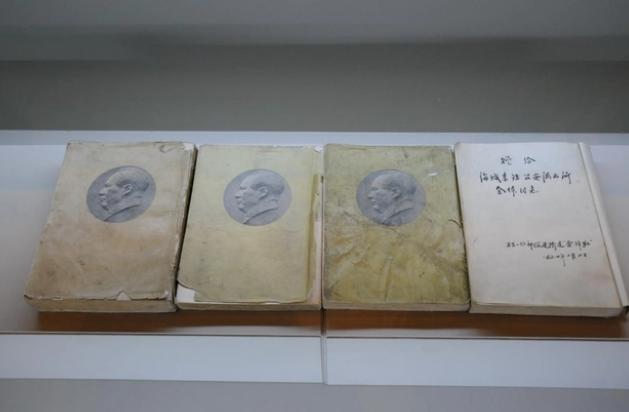 抚顺市雷锋纪念馆展出的雷锋读过的《毛泽东选集》雷锋在日记中写道:“人不吃饭不行,打仗没有武器不行,开车没有方向盘不行,干革命不学习毛主席著作不行。”