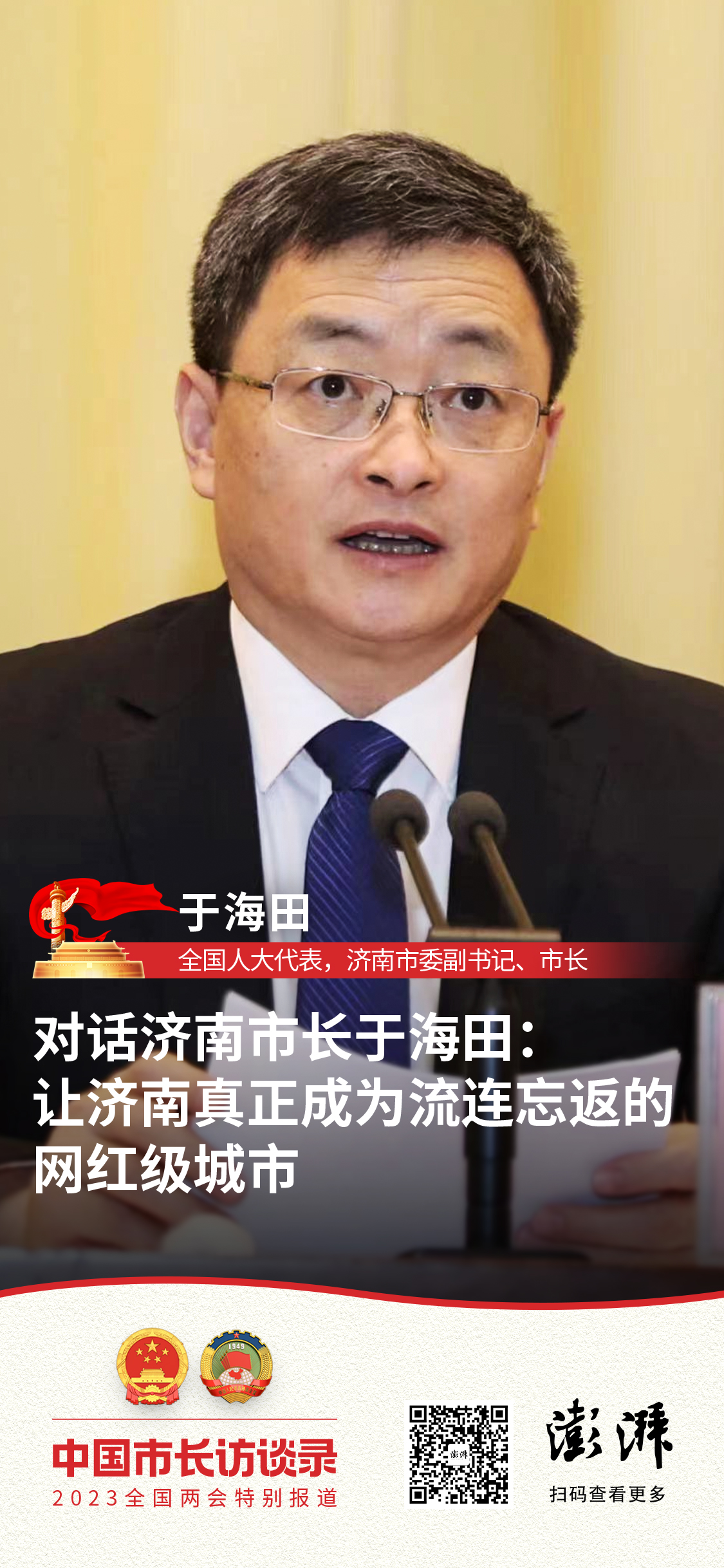 全国两会召开前夕,澎湃新闻(www.thepaper.cn)书面采访了全国人大代表,济南市委副书记、市长于海田。