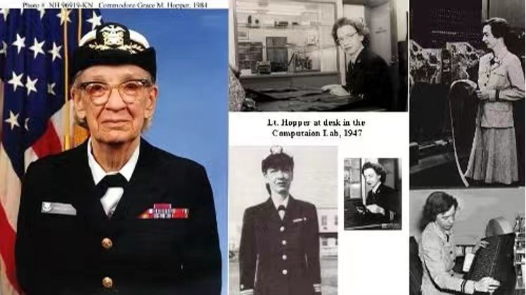 第一个发明出类似自然英语的计算机语言的人也是一位女性,她还是位美国海军少将,她叫格蕾丝·赫柏(Grace Hopper)。历史上在计算机领域,女性一直被要求做一些排除故障、组装新机器这种边角料的工作,但她们也不断有自己的贡献,但是这些贡献都被隐去了。