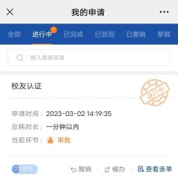 提交审核后,校友工作办公室工作人员将在3个工作日内进行审核,审核通过后会有相关信息提醒校友本人。
