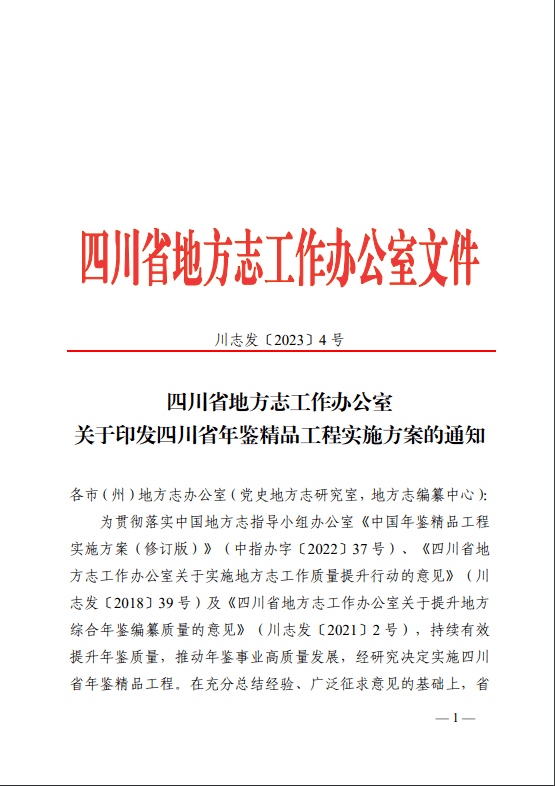 【通知公告】四川省地方志工作办公室关于印发四川省年鉴精品工程实施方案的通知