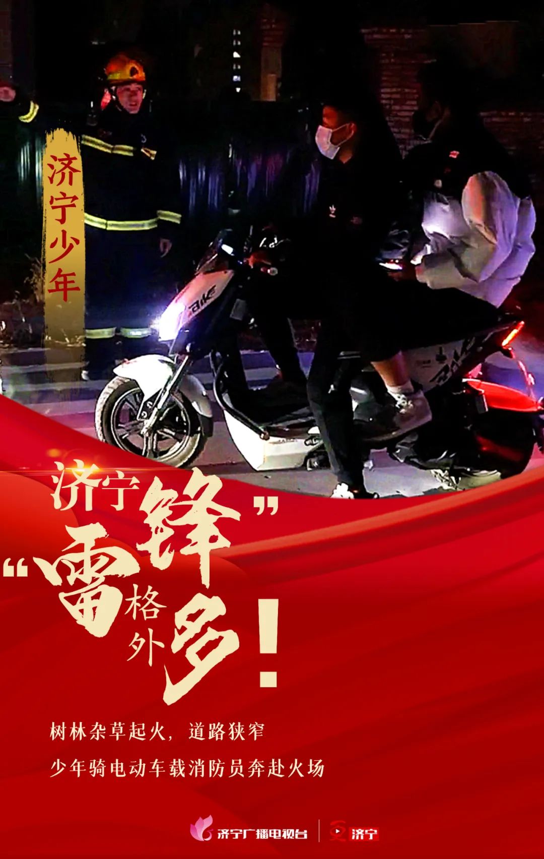 2023年1月份,一处树林杂草起火,因道路太窄消防车难以通行,热心的济宁少年骑电动车载消防员奔赴火场。在少年的帮助下,消防员很快到达起火地点,并对火情进行了扑救。这是济宁青少年刻在骨子里的责任感,更是对新时代雷锋精神更好的传承。