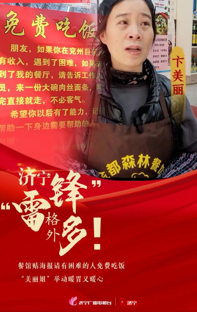 卞美丽,兖州区大安镇西北店村村民,经营一家餐馆十几年。为了能让遇到意外和暂时性困难的人吃上一顿热乎乎的饭,她和丈夫商量后在店里发起了“免费吃面”活动。截至目前,送出多少碗“爱心面”她从来没有统计过。但却用自己的实际行动将涓涓细流的小善汇聚成同舟共济的大爱,用一碗面温暖了一座城。