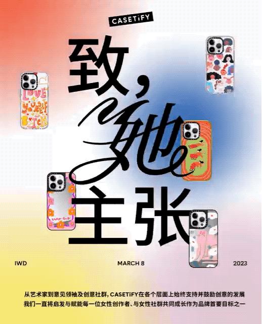 看点:CASETiFY 2023女神节精选系列以“致,她主张”为主题,为大众呈现了与三位中国女性艺术家合作的专属系列。其中包括与独立插画艺术家周日央的合作——“下腰女孩”;新生代独立插画师Gai Gai 钙钙运用清新明快又不失可爱的手绘带来的“悦动 Free Move”艺术家合作系列;以及中国PAWS签约艺术家ABAO由一只只生于未来的小怪兽打造的ABAO x CASETiFY 胶囊系列。上海正大广场