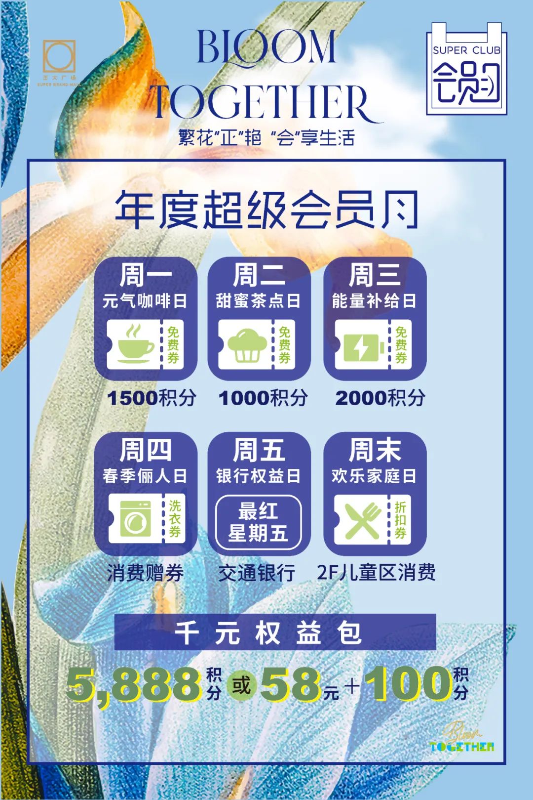 同时,伴随春日,女神节和正大会员月也再度回归。联动馆内品牌,正大广场推出了一系列献给会员的优惠活动,满满福利贯穿整个3月份。用不完的会员积分,统统都能当钱花,积分购价值超千元权益包、积分兑换林肯爵士乐上海中心音乐会门票……