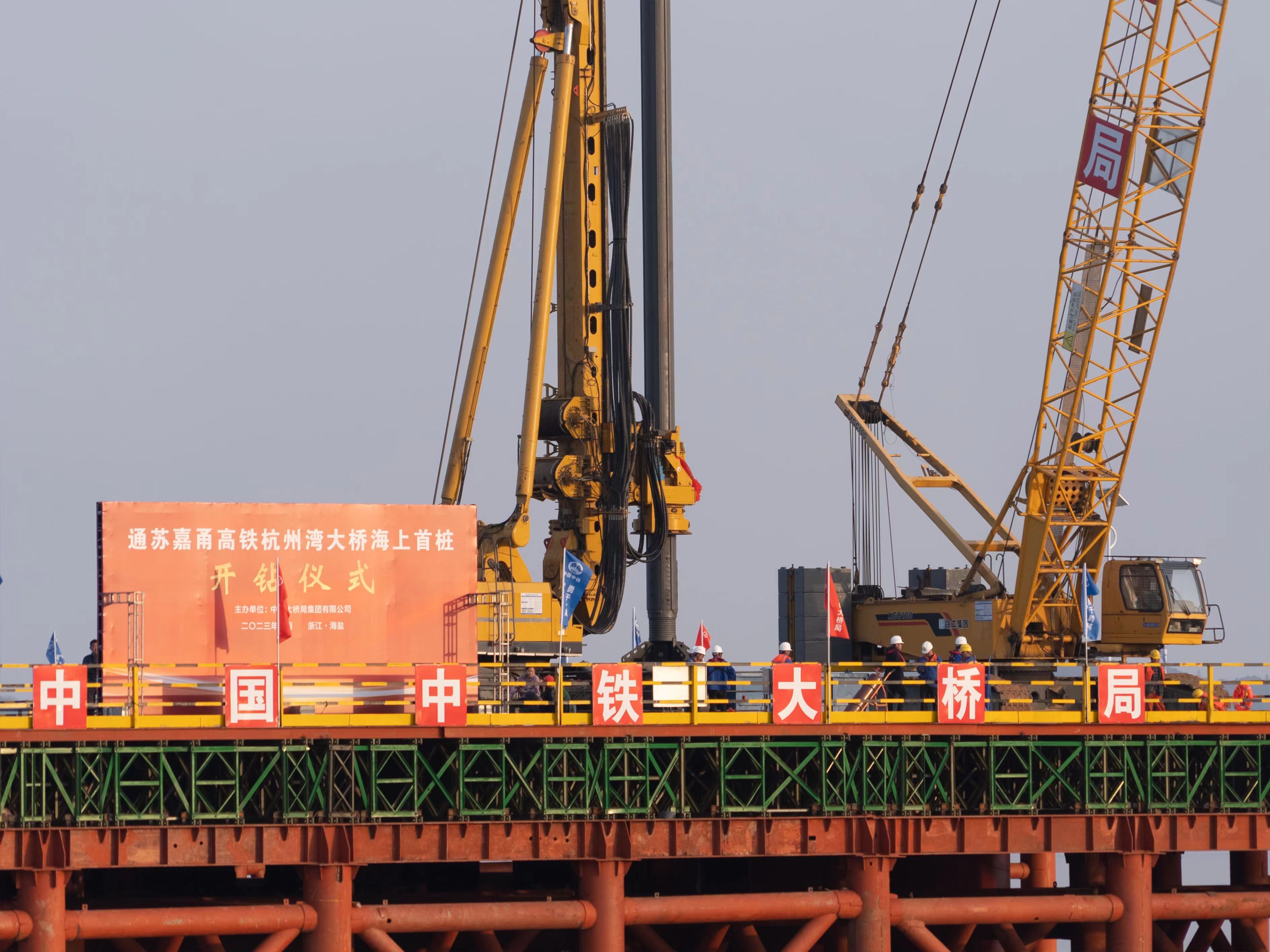 通苏嘉甬铁路杭州湾跨海大桥首桩开钻,浙江海盐县将圆高铁梦