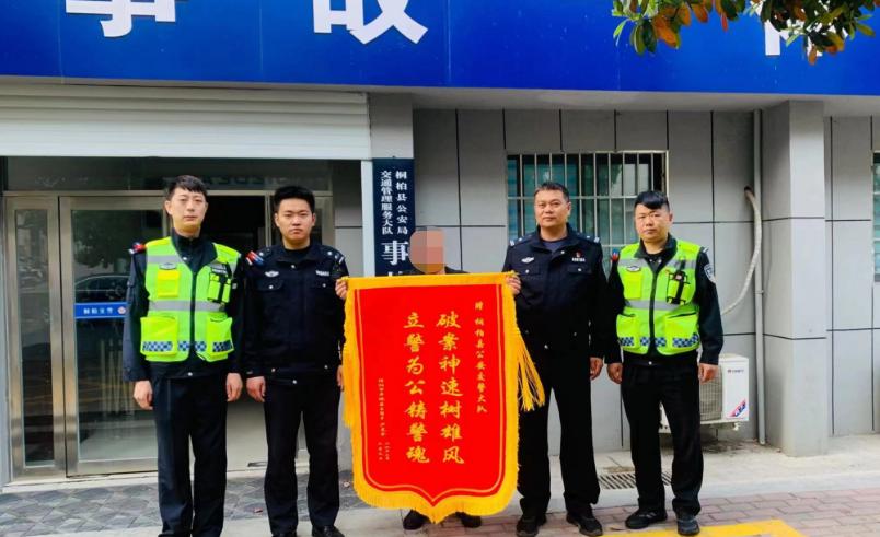 3月12日上午,家住河南省信阳市平桥区的居民严某特意来到南阳市桐柏县公安局交警大队,把一面绣着“破案神速树雄风 立警为公铸警魂”字样的锦旗送给事故中队民警,感谢他们及时破获肇事逃逸案,维护了受害人的权益和尊严。